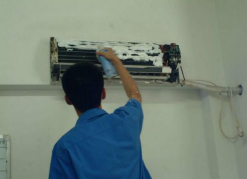 | 梧州空调维修师傅给梧州用户上门维修清洗空调。 |